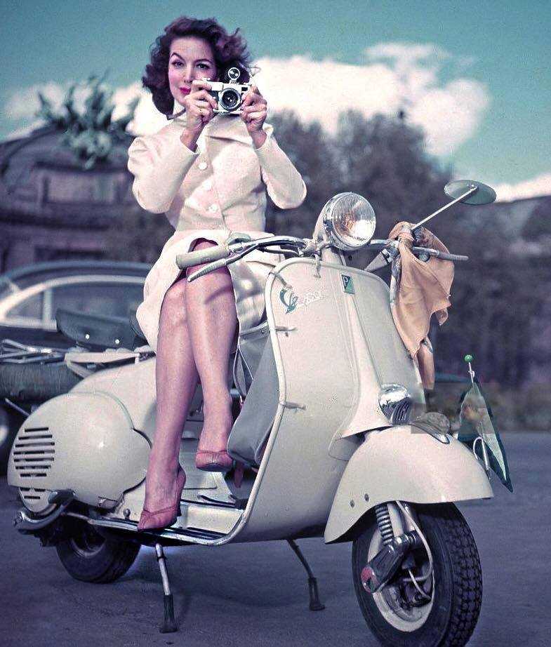 Quando vedi una Vespa sul cavalletto... e una dona.. capisci subito che la foto non è spontanea, ma spesso una posa pubblicitaria...