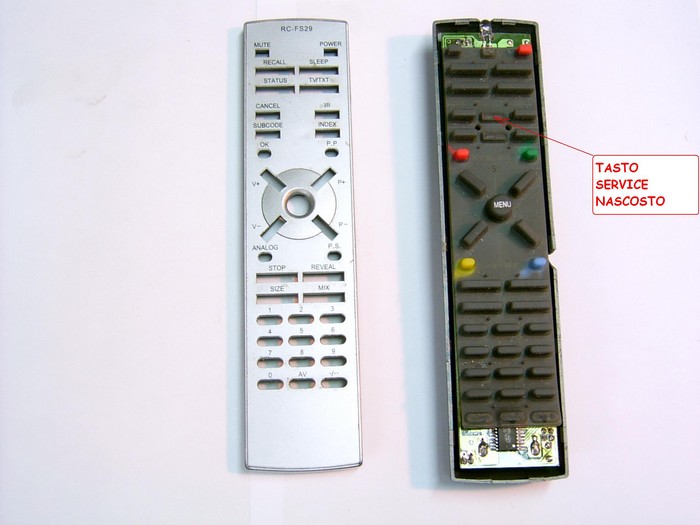 Fai questo tentativo, aprendo il telecomando originale, se uno di questi, c'è un tasto "nascosto" per il service. (by Gianpaolo)