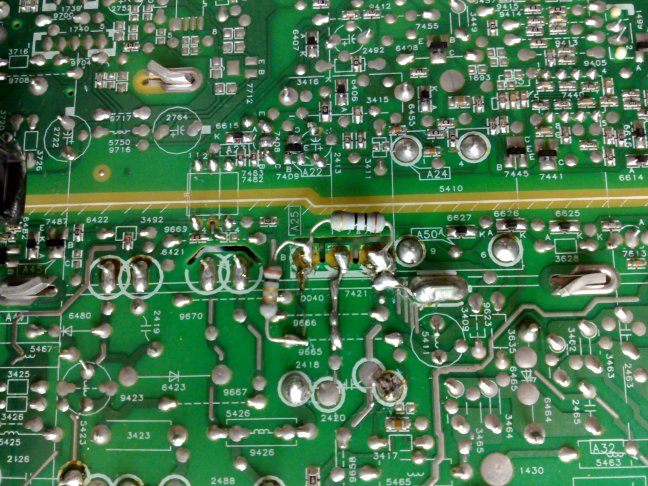 Riguardo alla modifica, non saprei aiutarti, sembra una sorta di adattamento di finale non originale, ma essendo fatta direttamente in Philips, è molto improbabile. Riguard ai lampeggi, il primo di solito è più lungo e rappresenta la prima cifra, il resto sono più veloci e rappresentano la seconda cifra. Ci sono dei casi in cui dopo la seconda cifra c'è una breve pausa ed un'altra serie di lampeggi, in questo caso i lampeggi dopo la seconda cifra rappresenta un ulteriore codice di errore (esempio 12-5: uno lungo due brevi pausa cinque brevi) Se riesci a definire il numero, forse possiamo aiutarti in modo meno generico. Ho avuto un caso nel quale l'apparecchio passava in ST-BY dopo un rumore di scarica, ed aveva una resistenza SMD staccata ovvero la R3472 da 39K. Prova a verificare e, facci sapere. |